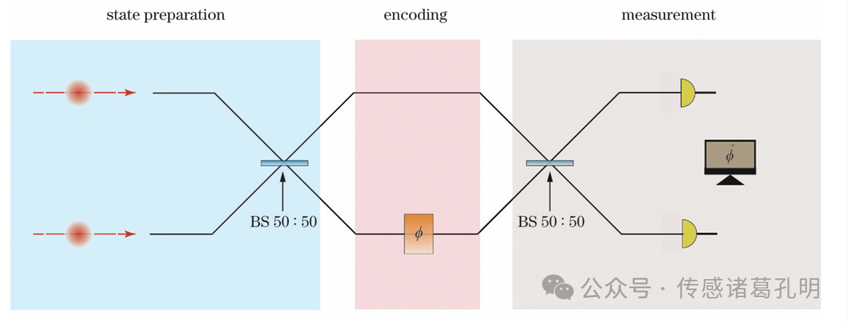 光學(xué)干涉儀是量子精密測量最典型的應(yīng)用平臺。其中馬赫-曾德爾干涉儀(MZI 成為研究相位測量的標(biāo)準(zhǔn)模型(圖2)。