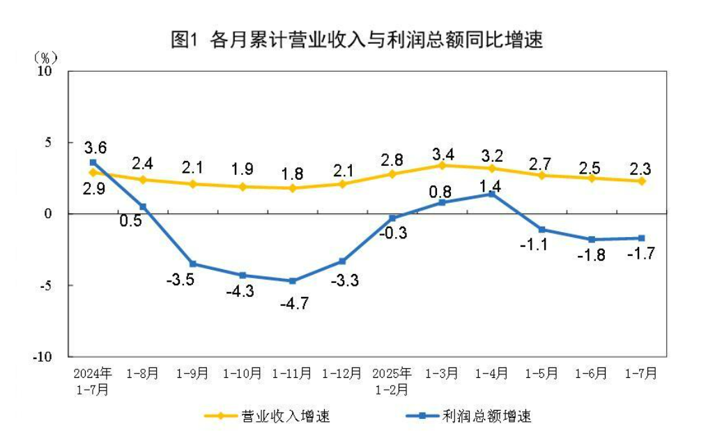 7月份,規(guī)模以上工業(yè)企業(yè)利潤同比下降1.5%。