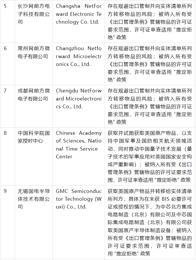 美國商務部工業(yè)與安全局(BIS)于9月12日在美國聯(lián)邦公報發(fā)布公告,通過修訂《出口管理條例》(EAR),將 32 家實體新增至實體清單,其中有23家是中國公司,具體清單、列入實體清單的理由及管制措施如下表(表中提及的列入實體清單的理由為BIS方面指認,不代表本號對該理由或相關事實的認可):