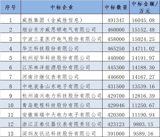 本批次電能表+終端匯總中標(biāo)數(shù)據(jù)