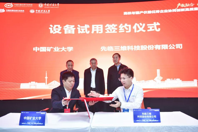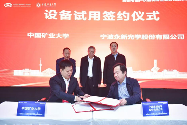 此次活動(dòng)促成了寧波永新光學(xué)股份有限公司,先臨三維科技股份有限公司、成都玖錦科技有限公司、中國(guó)科學(xué)院合肥物資科學(xué)研究院4家企業(yè)與礦大簽訂設(shè)備試用協(xié)議。工信部裝備工業(yè)一司原一級(jí)巡視員苗長(zhǎng)興、協(xié)會(huì)秘書長(zhǎng)李躍光、礦大副書記李江濤共同見簽,礦大實(shí)驗(yàn)室與設(shè)備管理處處長(zhǎng)吳祝武代表礦大與企業(yè)簽約,通過(guò)此次設(shè)備試用協(xié)議的簽訂及合作平臺(tái)的搭建,開啟了校企儀器應(yīng)用與技術(shù)合作的嶄新篇章,為國(guó)產(chǎn)儀器的市場(chǎng)化應(yīng)用注入了新的動(dòng)力。