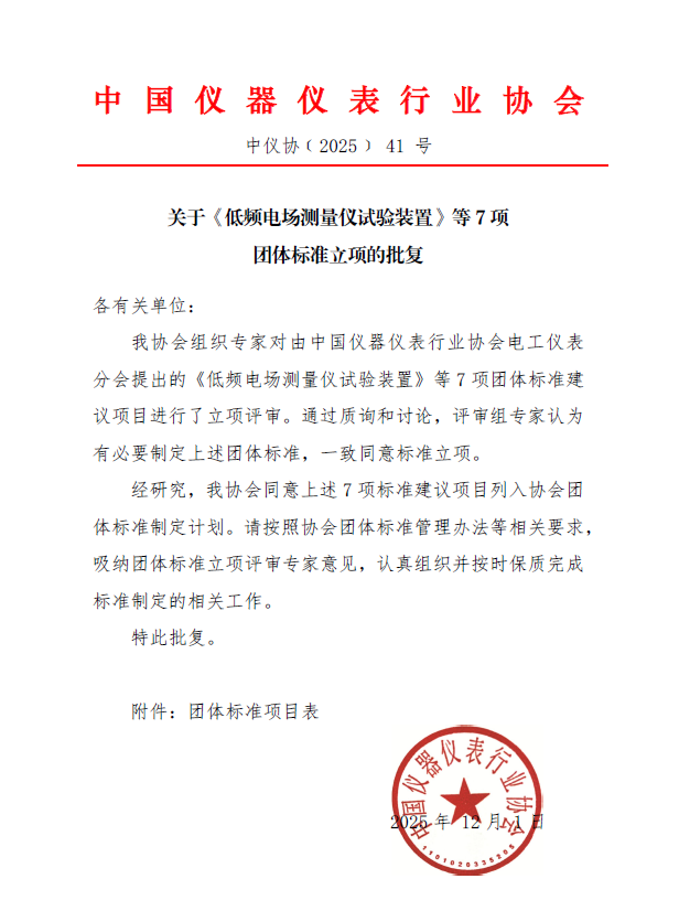 關(guān)于《低頻電場測量儀試驗裝置》等7項團體標準立項的
