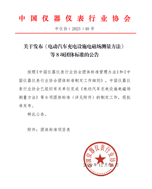 關于發布《電動汽車充電設施電磁場測量方法》等8項團