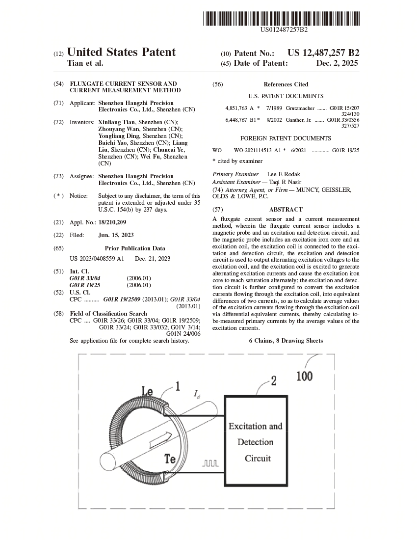 近日,深圳市航智精密電子有限公司斬獲重要國(guó)際技術(shù)認(rèn)可 —— “一種磁通門電流傳感器及電流測(cè)量方法”正式獲得美國(guó)發(fā)明專利授權(quán),標(biāo)志著航智在電流測(cè)量領(lǐng)域的核心技術(shù)實(shí)力得到美國(guó)知識(shí)產(chǎn)權(quán)體系的權(quán)威認(rèn)證。