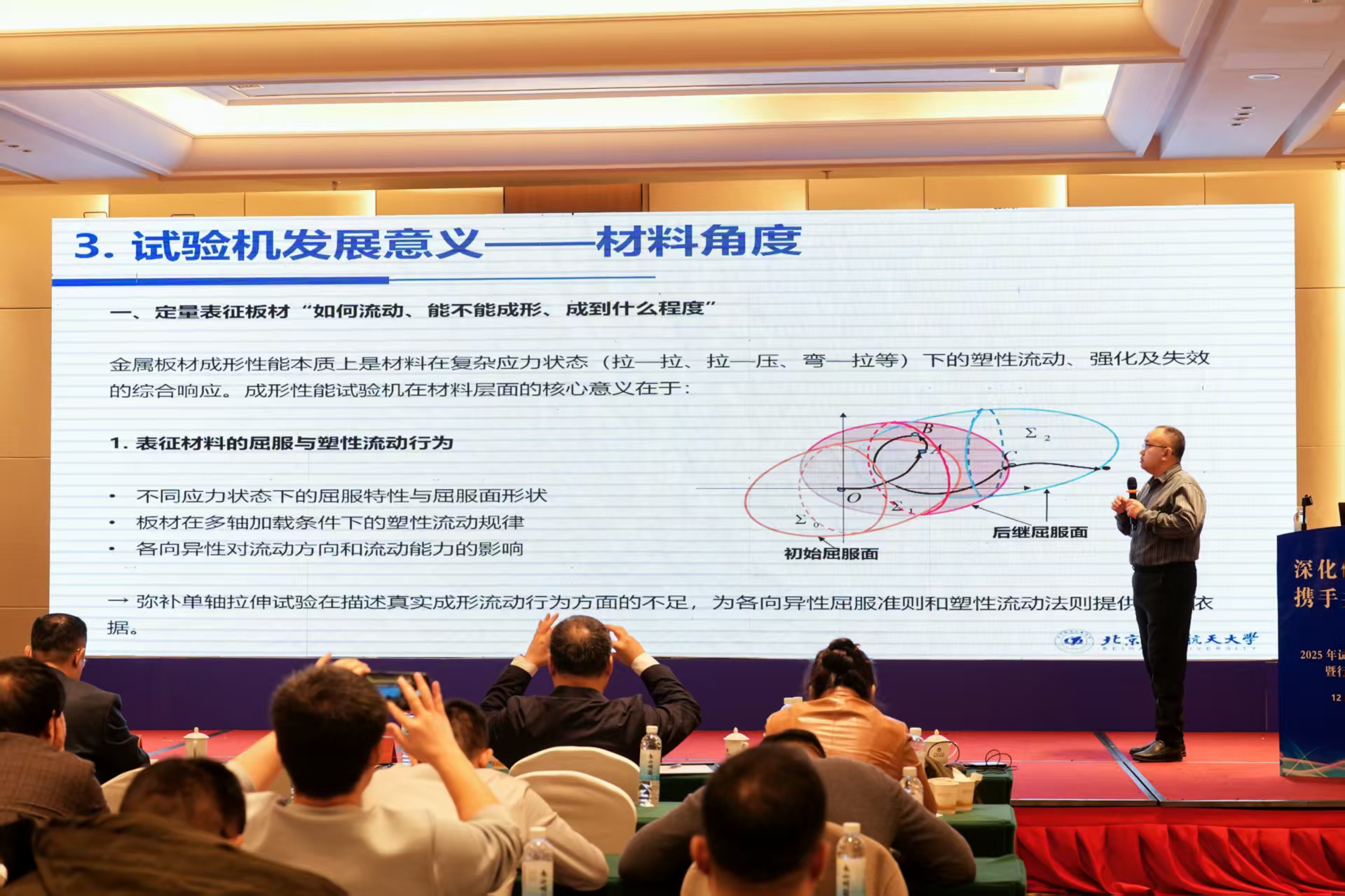 專家報告環節,來自北京航空航天大學和試驗儀器行業頭部企業的專家,分別圍繞金屬材料、非金屬材料測試技術發展趨勢、高溫及極端環境應用、硬度、平衡機技術發展以及未來趨勢等主題發表精彩演講。