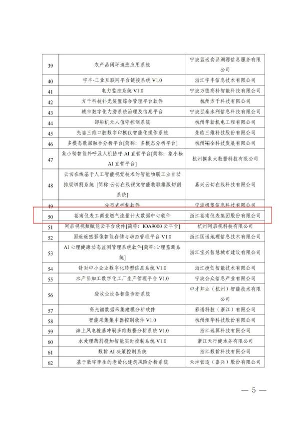 浙江省首版次軟件產品(工商業燃氣流量計大數據中心軟件 V1.0)
