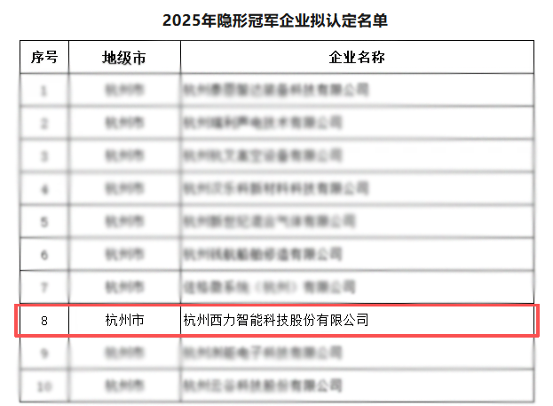 近日,浙江省經濟和信息化廳公布了2025年度浙江省“隱形冠軍”企業名單。西力科技憑借扎實的技術積累、優秀的市場表現與持續的創新能力,成功入選,正式躋身省級“隱形冠軍”行列。
