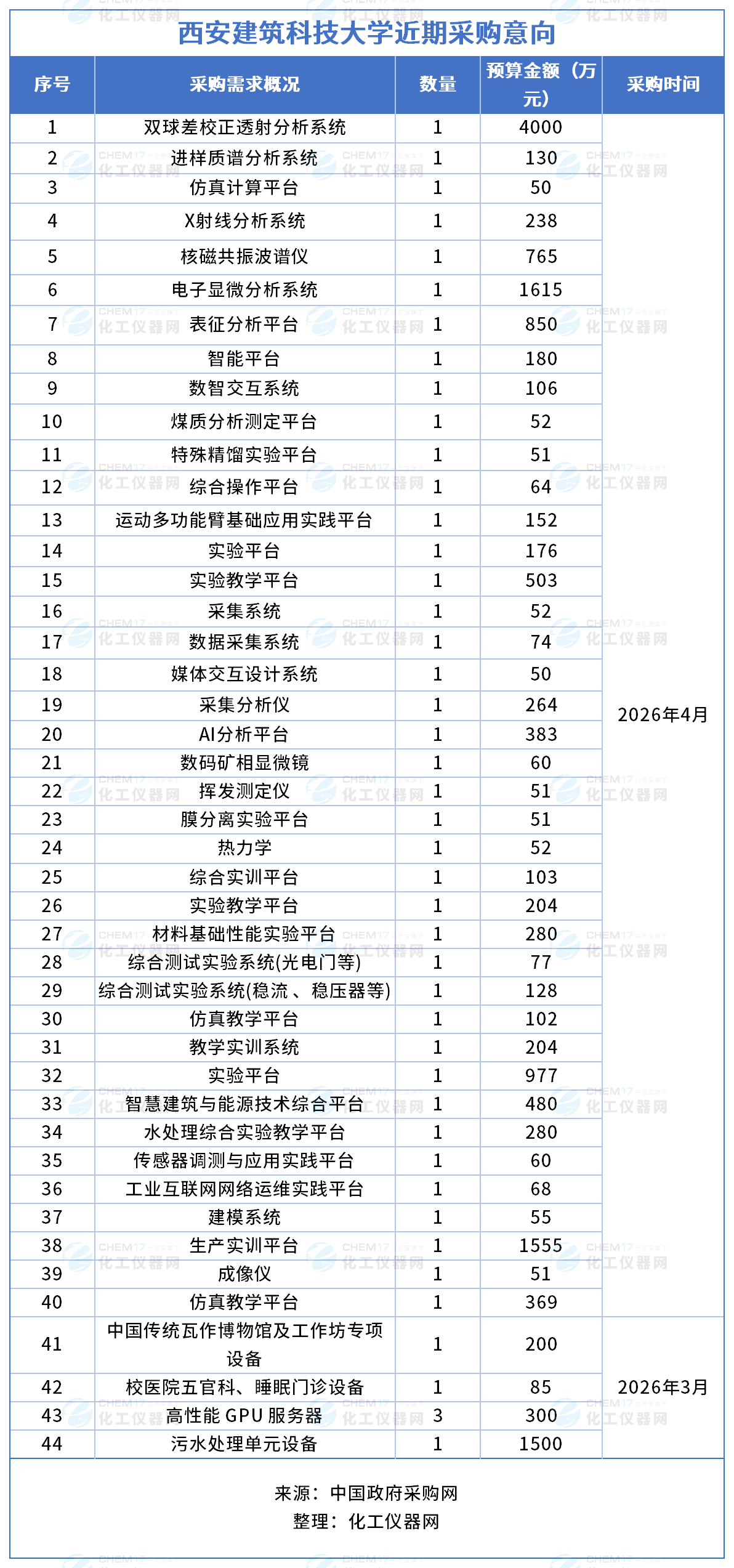 預算超1.7億!西安建筑科技大學發(fā)布近期采購意向